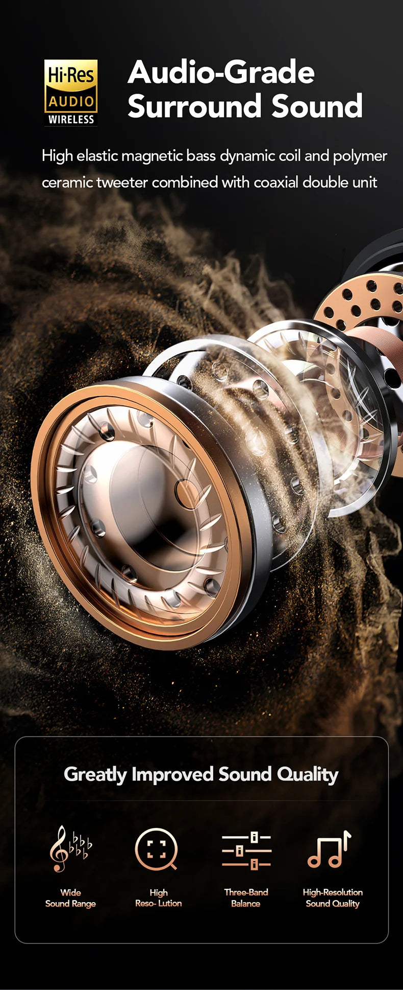 معادلة الصوت التكيفية (مدعومة بالذكاء الاصطناعي): تحسين صوت ذكي يقوم بتحليل وضبط الإخراج الصوتي تلقائيًا بناءً على بنية أذن المستخدم الفريدة.
